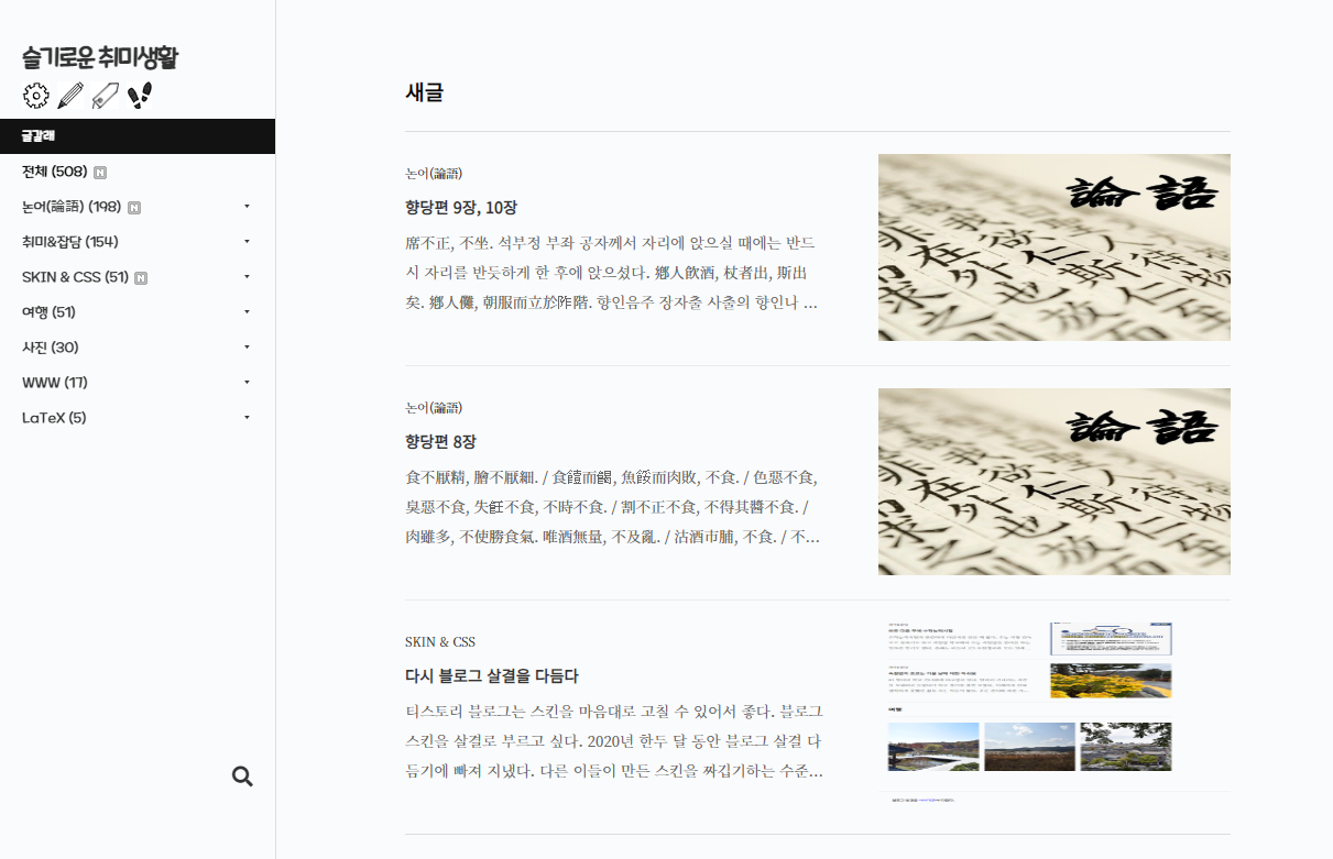 사는이야기 2020. 12. 11. 18:20앞으로 새로 다듬은 스킨은 https://noneo.tistory.com/547에 공개하려고 한다.