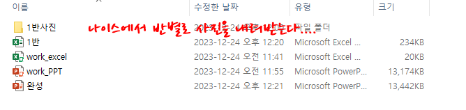 2. 내려받은 파일이 있는 폴더에 학생 사진을 넣을 폴더를 만든다. 나이스에서 반별로 내려받으면 편하다.