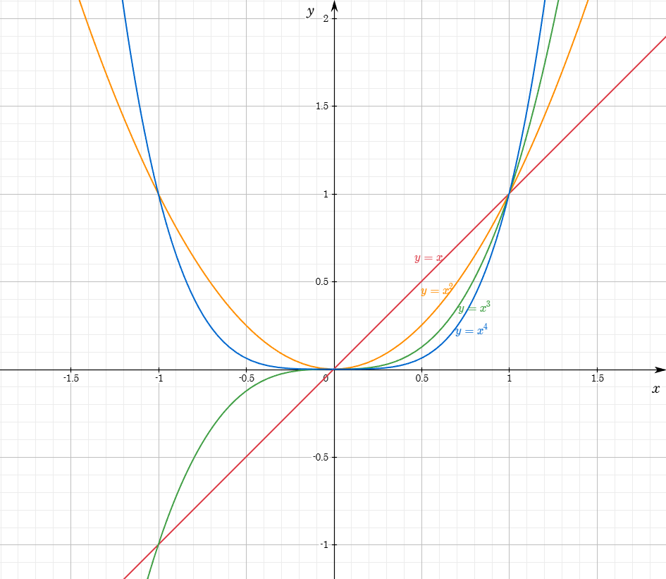 $$x>1\quad \implies\quad x<x^2<x^3<x^4<\cdots\tag{2-1-2}$$