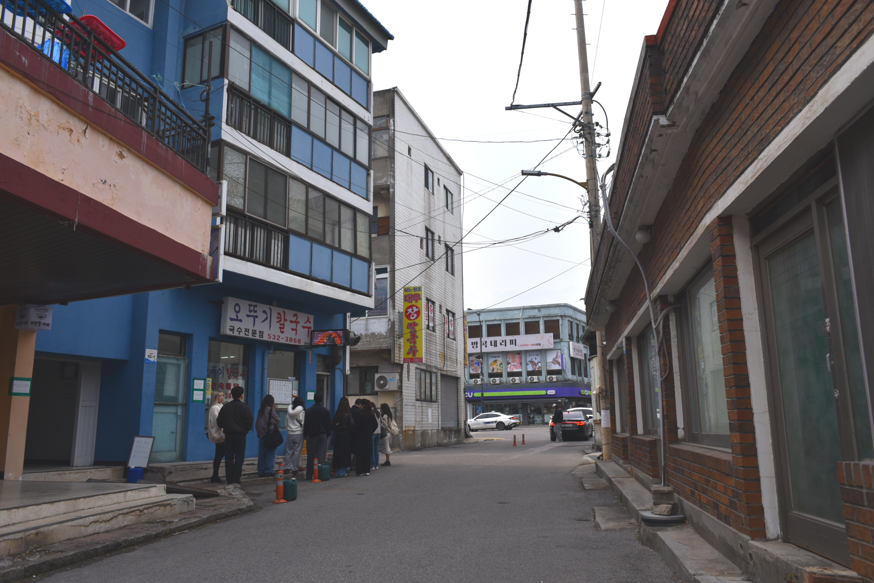 오늘도 오뚜기 칼국수는 장사가 잘 되고 있다. 옆에 있는 대우 장칼국수도 줄이 길게 늘어섰는데 골목 하나 건너에 있는 동해 칼국수는 한산하다. 입맛이 무딘 나는 큰 차이를 모르겠다. 기찻길 옆 동네는 오막살이는 아니지만 여전히 뭔가 심하게 낙후된 느낌이 든다. 옛날엔 뱃사람들이 흥을 내던 술집으로 보이는 집은 모두 문을 닫았고 망해버린 모텔도 있어 을씨년스럽다.