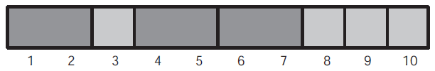 문제 그림과 같이 $1\times 10$의 직사각형 판을 $1\times 1$ 또는 $1\times 2$ 판으로 덮는 방법은 모두 몇 가지인가?