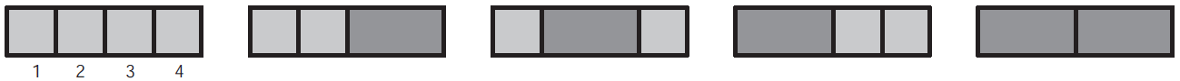 $$(1,1,1,1),\;\;(1,1,2),\;\;(1,2,1),\;\;(2,1,1),\;\;(2,2)$$