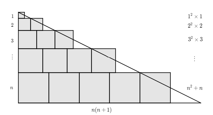 자연수 세제곱을 더한 값을 그림으로 그리면 아래와 같다. 그림이 생각만큼 깔끔하게 나오지 않아서 아쉽다.